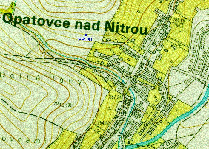 | Poloha minerálneho prameňa na výreze civilnej mapy | ZM 1:10 000 35-24-14 | Position of the spring on the civil map |