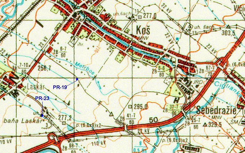 | Poloha minerálneho prameňa na výreze vojenskej mapy | TM 1:50 000 M-34-110-C | Position of the spring on the military map |
