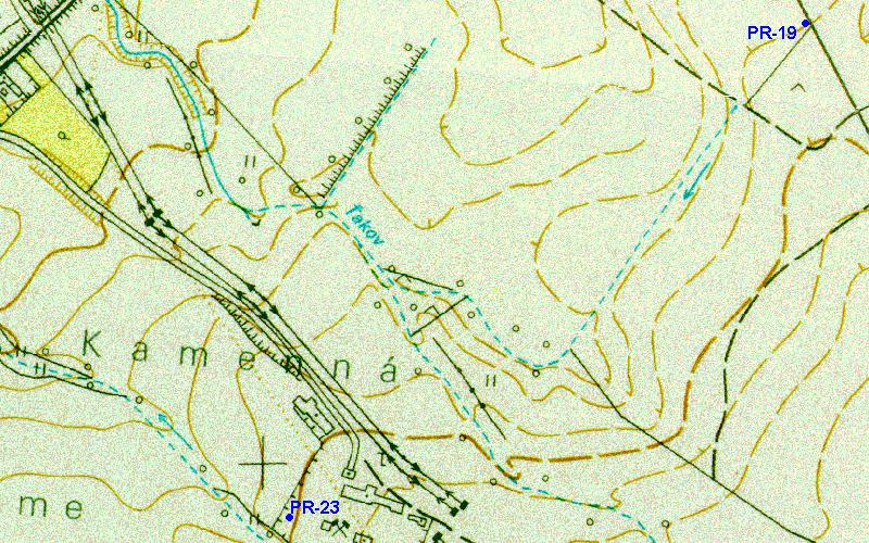 | Poloha minerálneho prameňa na výreze civilnej mapy | ZM 1:10 000 35-24-19 | Position of the spring on the civil map |