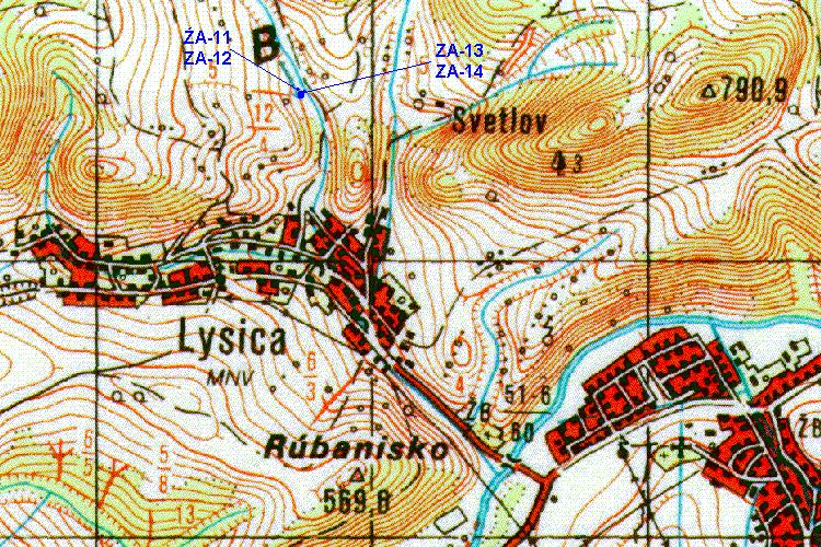 | Poloha minerálneho prameňa na výreze civilnej mapy | ZM 1:10 000 26-31-19 | Position of the spring on the civil map |
