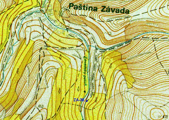 | Poloha minerálneho prameňa na výreze civilnej mapy | ZM 1:10 000 25-42-25 | Position of the spring on the civil map |