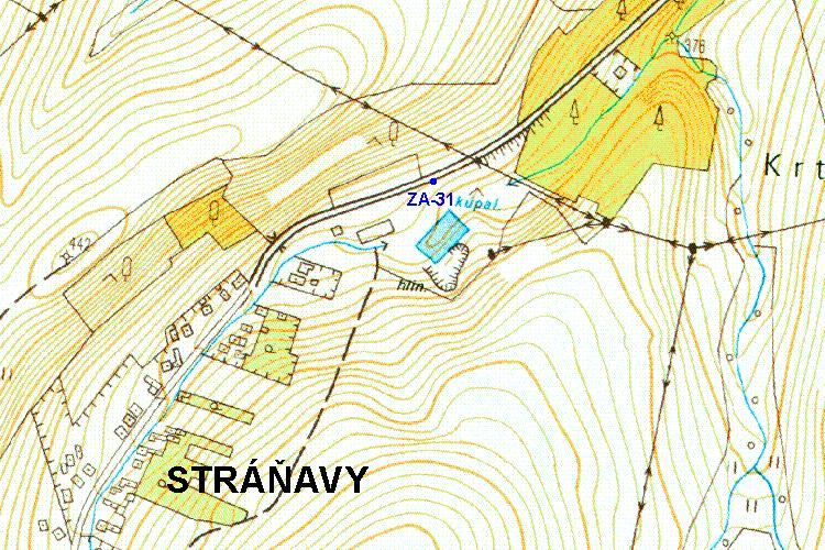 | Poloha minerálneho prameňa na výreze civilnej mapy | ZM 1:10 000 26-33-03 | Position of the spring on the civil map |