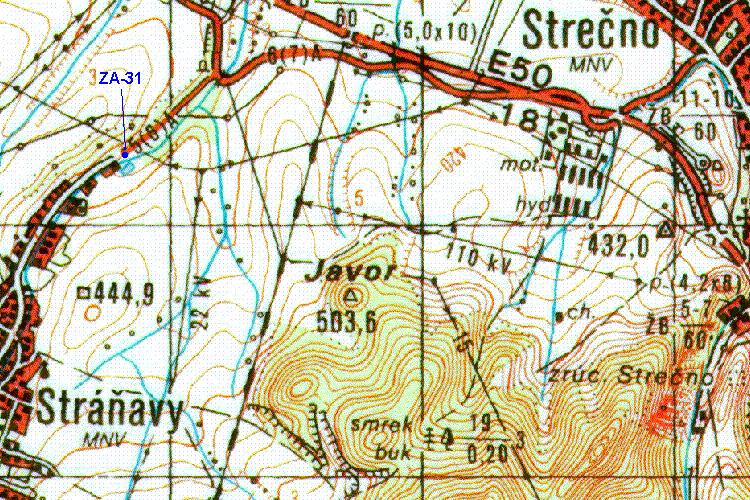 | Poloha minerálneho prameňa na výreze vojenskej mapy | TM 1:50 000 M-34-98-B | Position of the spring on the military map |